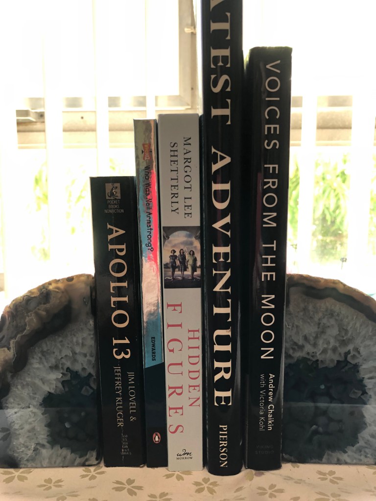 And today, in the photo above, I share with you just a few of our family’s moon-related books.