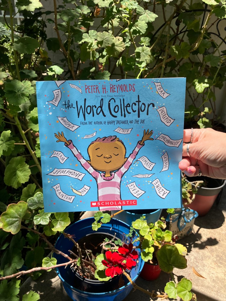 From his stacks, we did find a few to donate, and I found one I have now placed on my bookcase — The Word Collector by Peter H. Reynolds.
